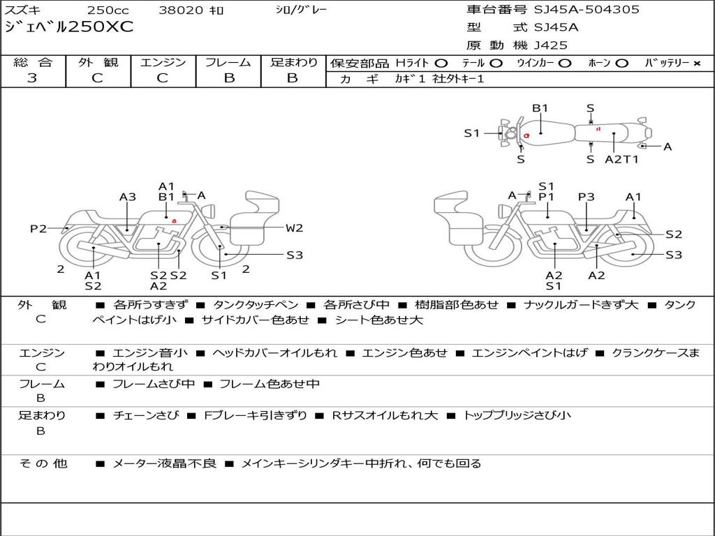 | Номер рамы / VIN | SJ45A-504305 |