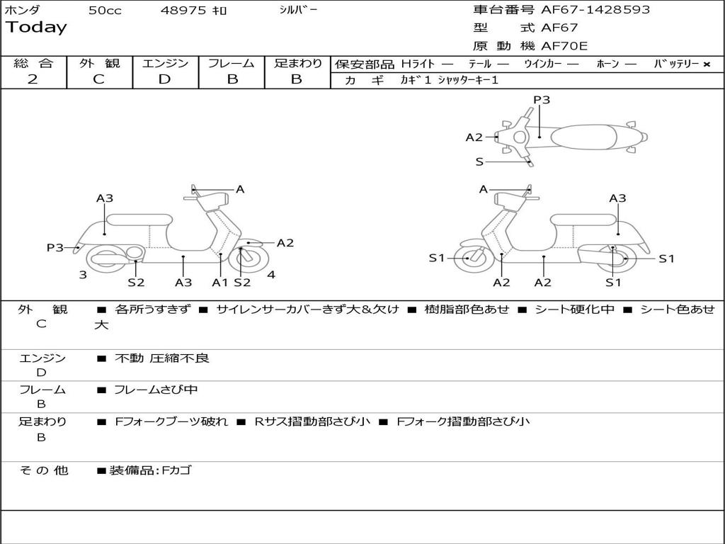 | Номер рамы / VIN | AF67-1428593 |