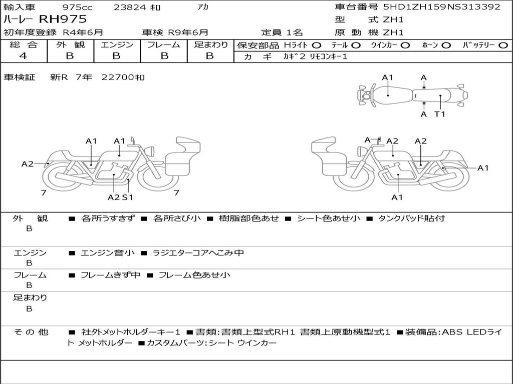 | Номер рамы / VIN | 5HD1ZH159NS313392 |