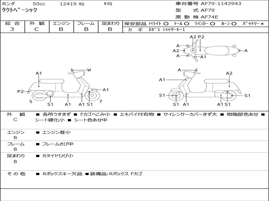 | Номер рамы / VIN | AF79-1143943 |