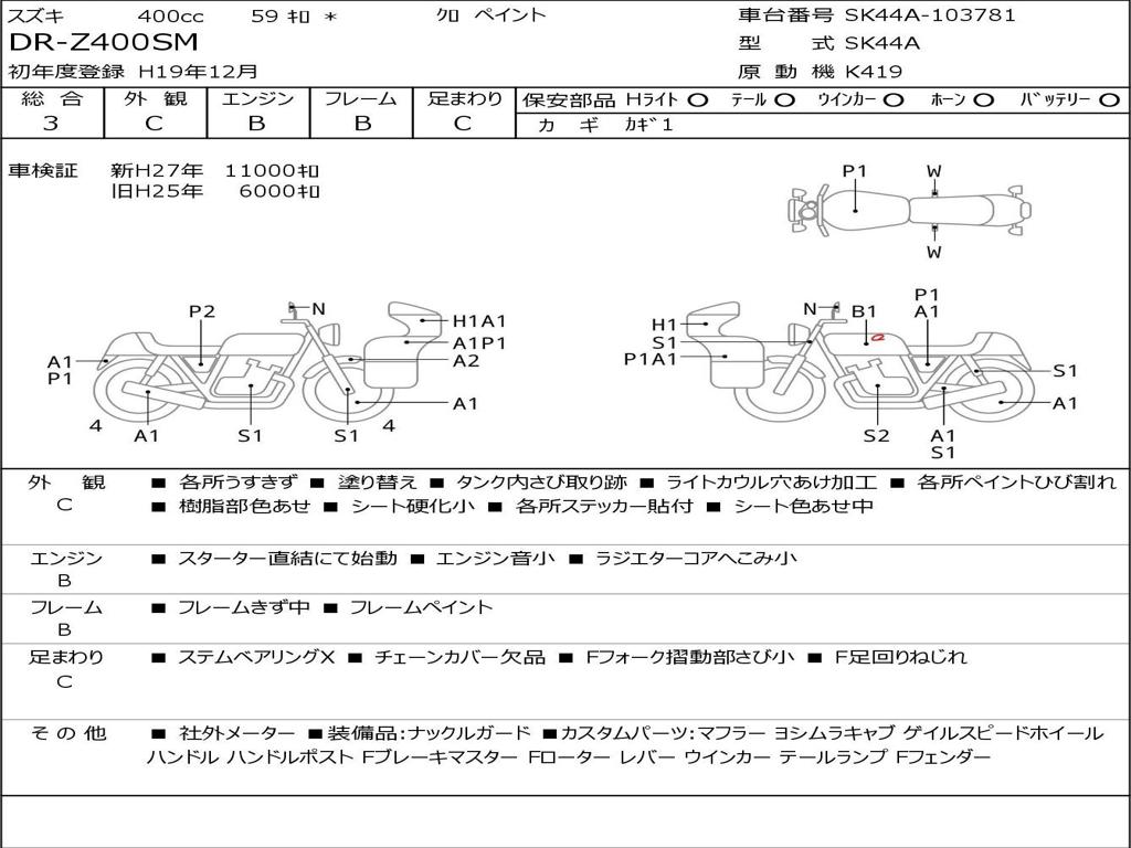 | Номер рамы / VIN | SK44A-103781 |