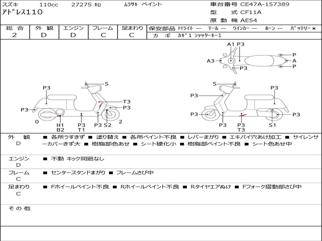 | Номер рамы / VIN | CE47A-157389 |