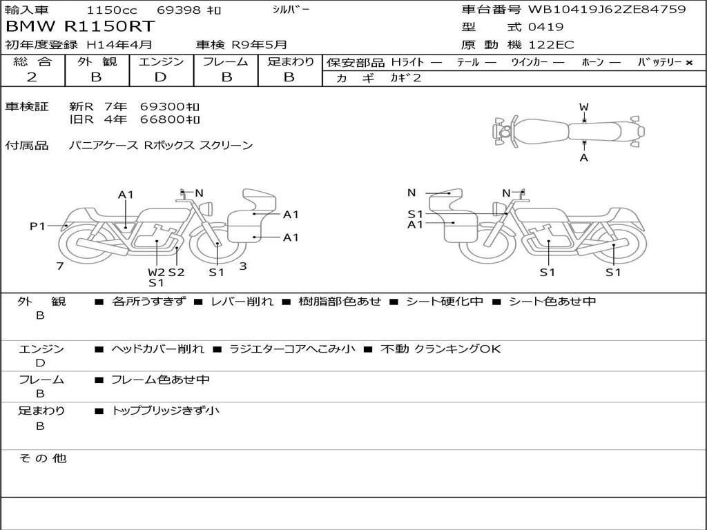 | Номер рамы / VIN | WB10419J62ZE84759 |