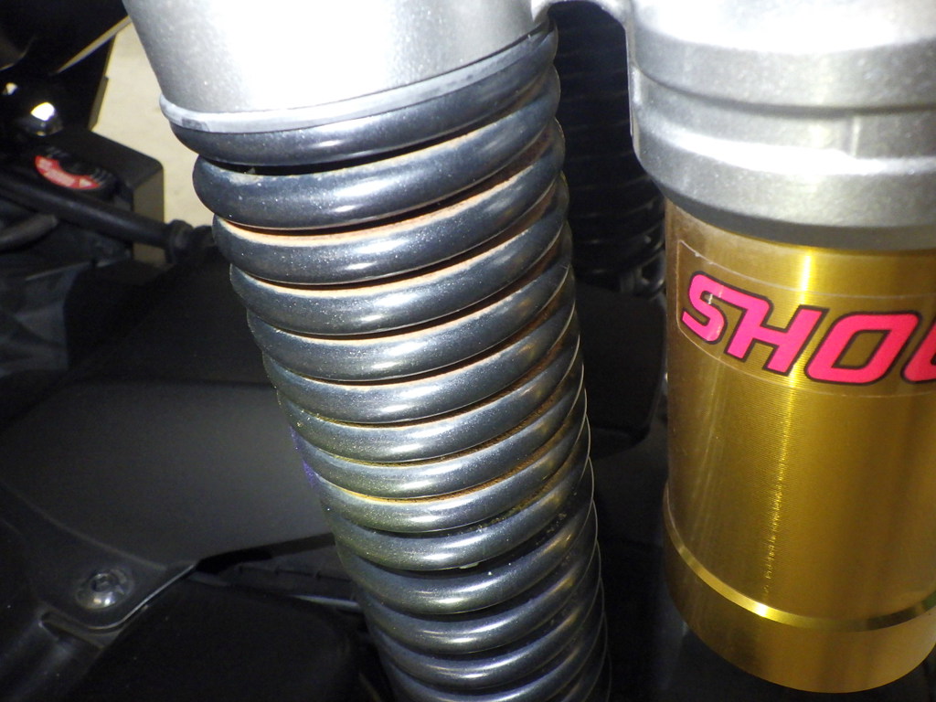 | внешняя часть вилки | царапины, потек масла |