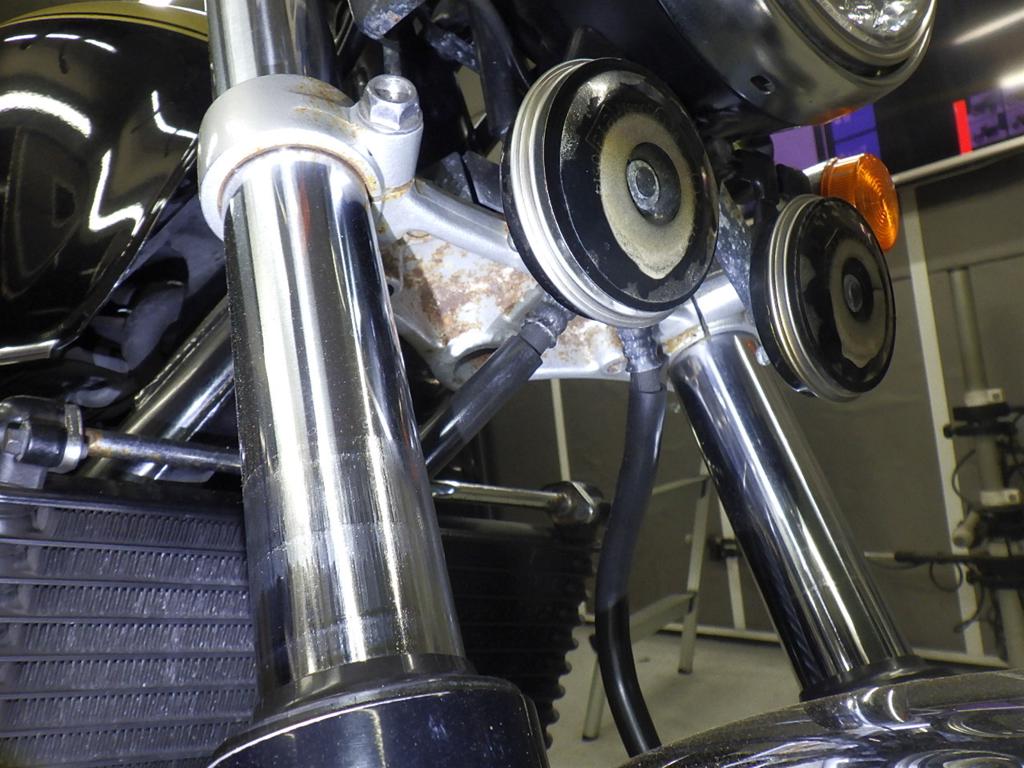 | внешняя часть вилки | rust paint, потертость краски, потек масла, неисправен сальник, перекрашено |