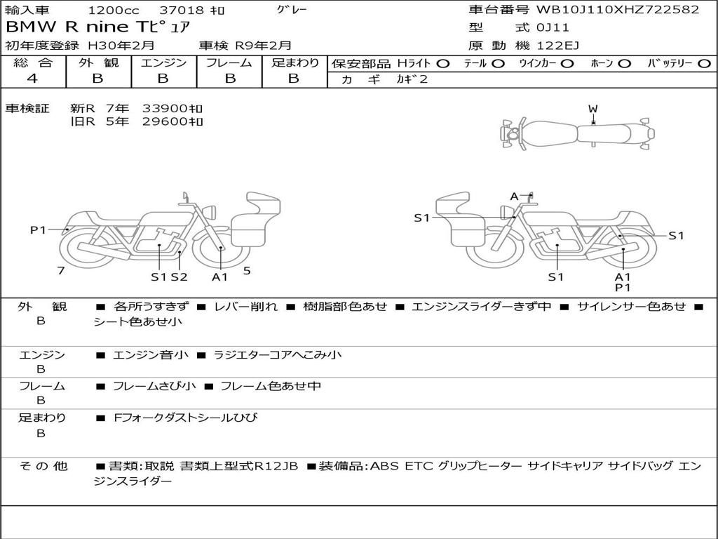 | Номер рамы / VIN | WB10J110XHZ722582 |