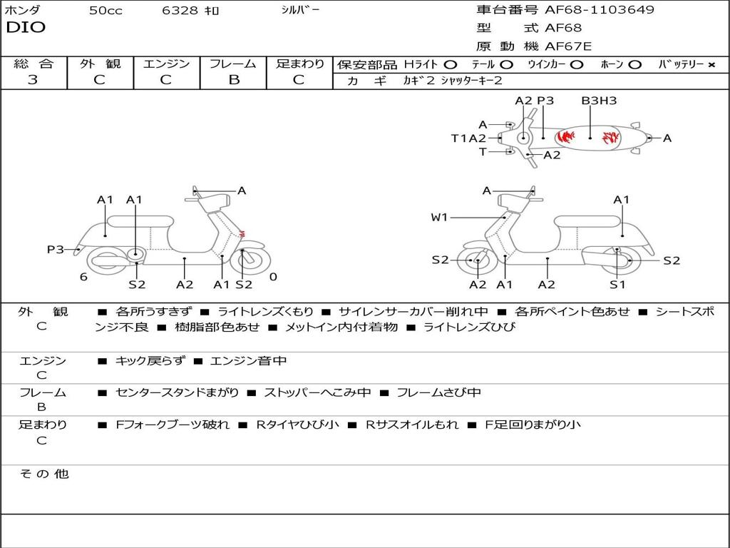 | Номер рамы / VIN | AF68-1103649 |