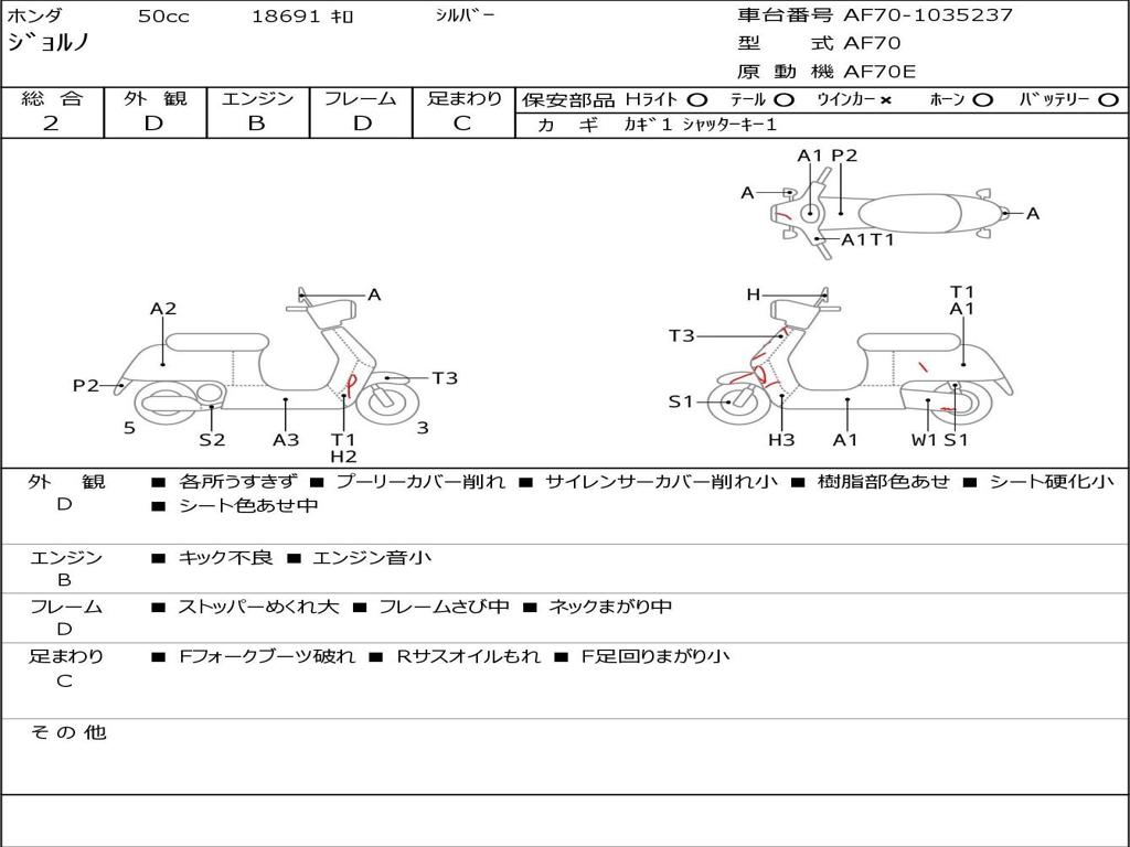 | Номер рамы / VIN | AF70-1035237 |