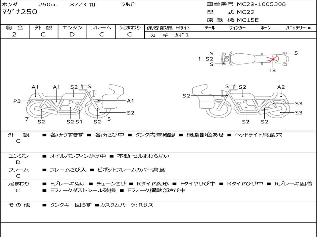 | Номер рамы / VIN | MC29-1005308 |