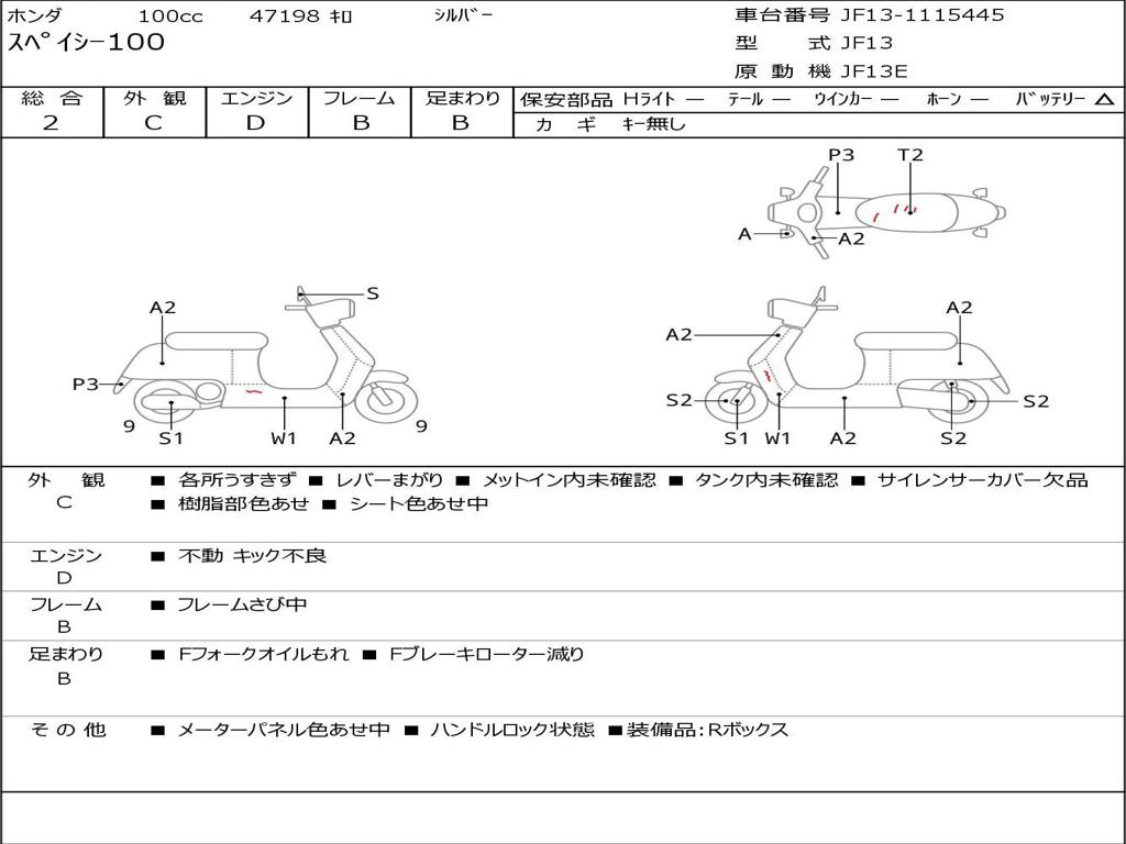 | Номер рамы / VIN | JF13-1115445 |