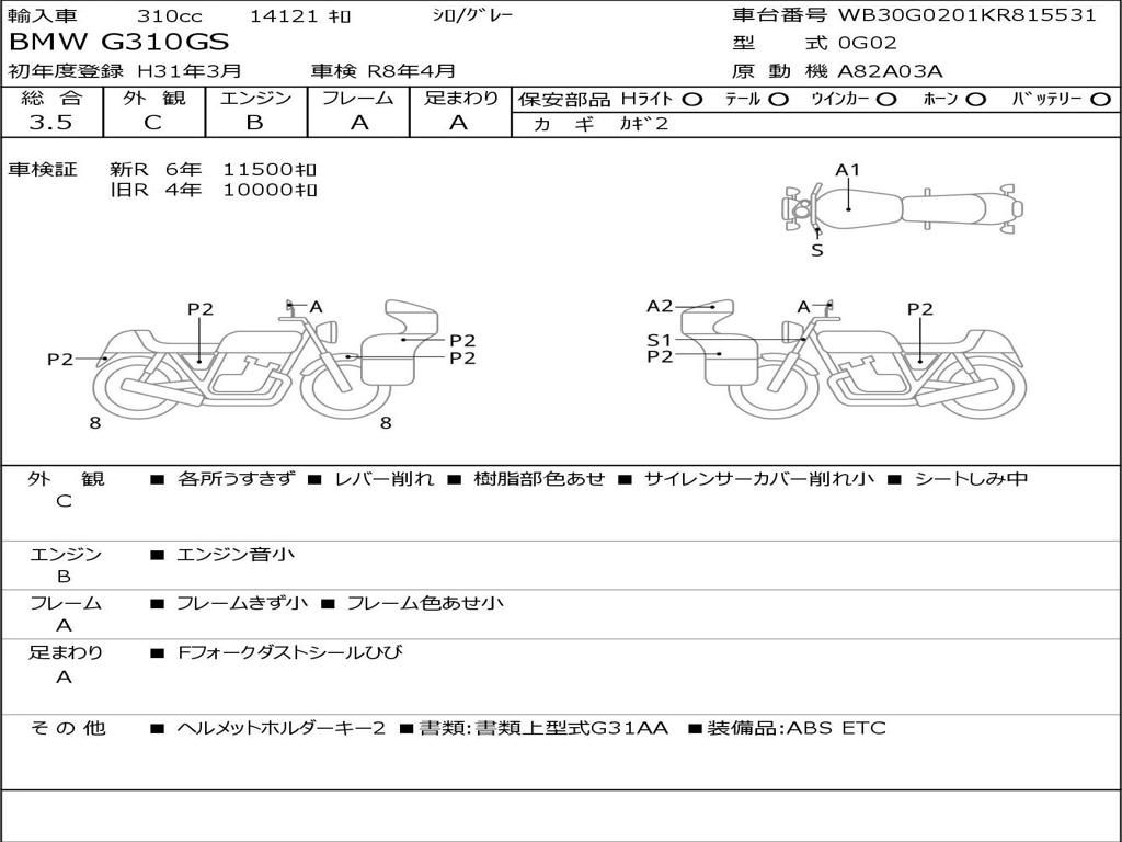 | Номер рамы / VIN | WB30G0201KR815531 |