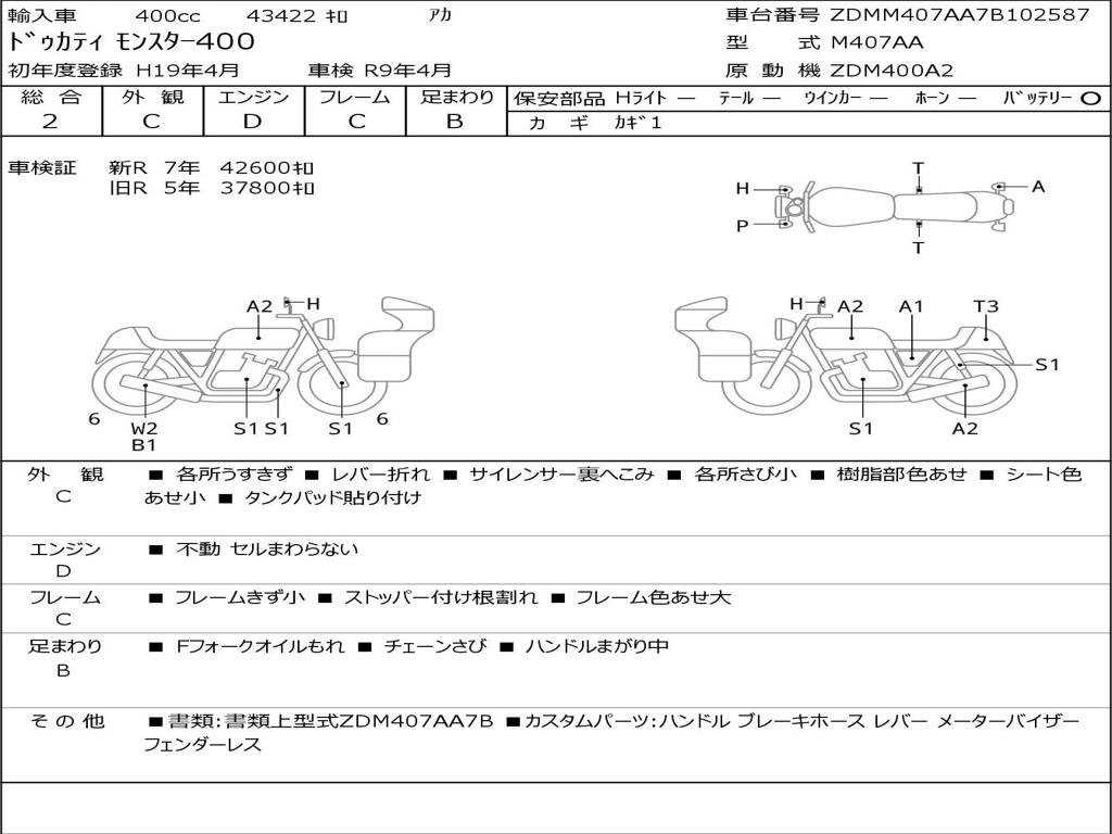 | Номер рамы / VIN | ZDMM407AA7B102587 |