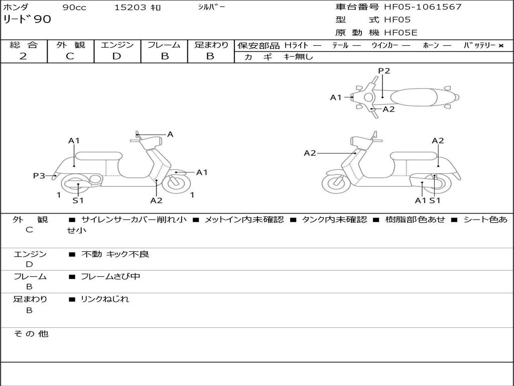 | Номер рамы / VIN | HF05-1061567 |