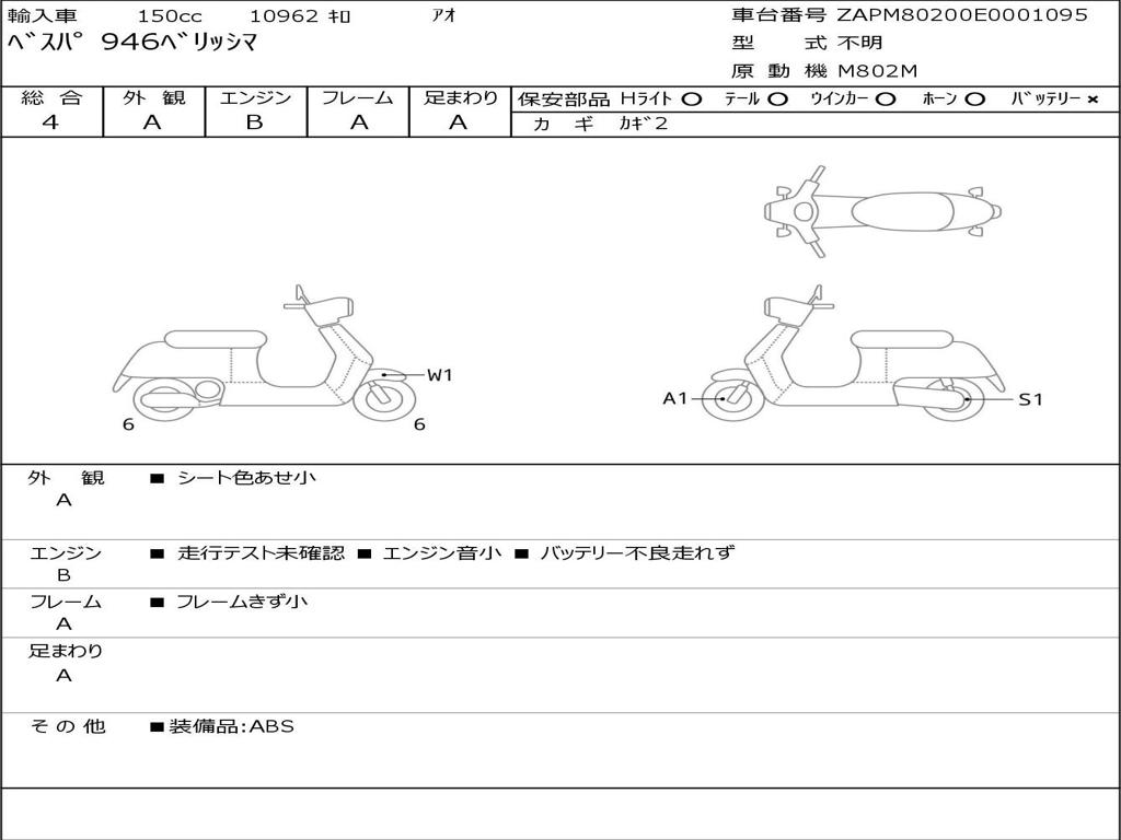 | Номер рамы / VIN | ZAPM80200E0001095 |
