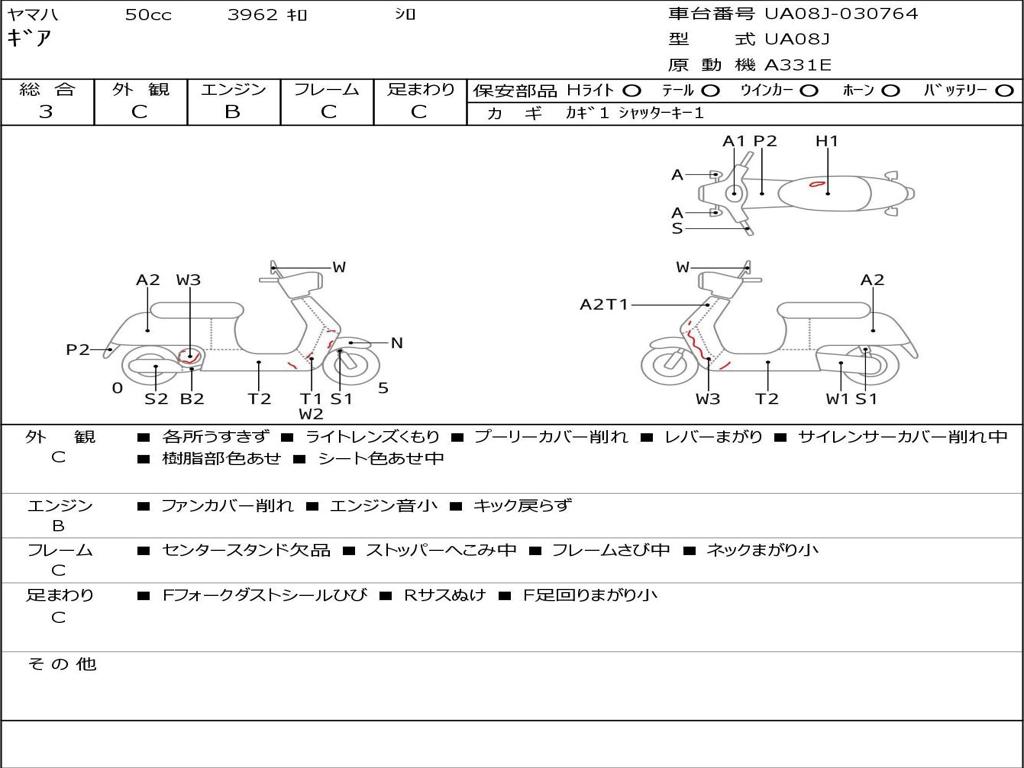 | Номер рамы / VIN | UA08J-030764 |