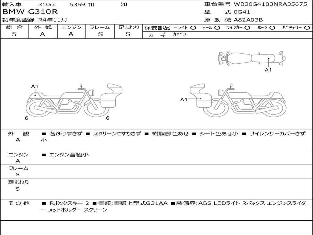 | Номер рамы / VIN | WB30G4103NRA35675 |