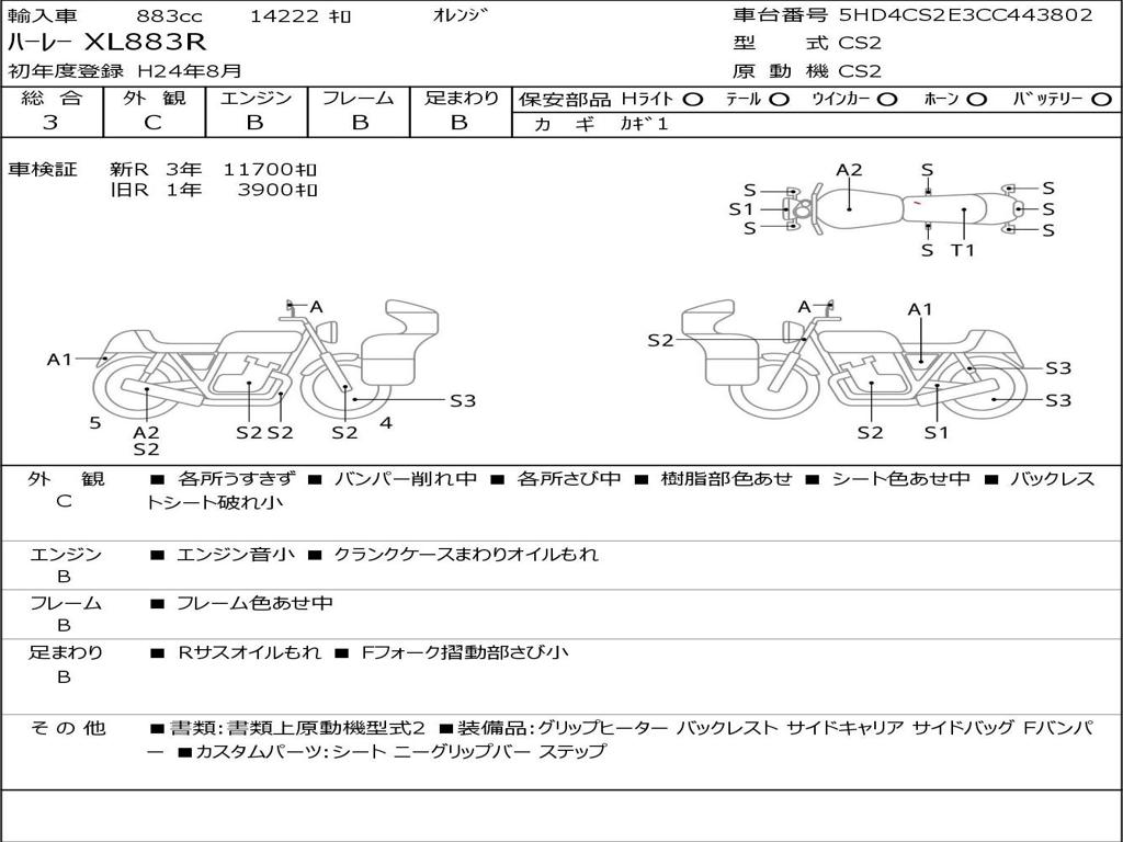 | Номер рамы / VIN | 5HD4CS2E3CC443802 |