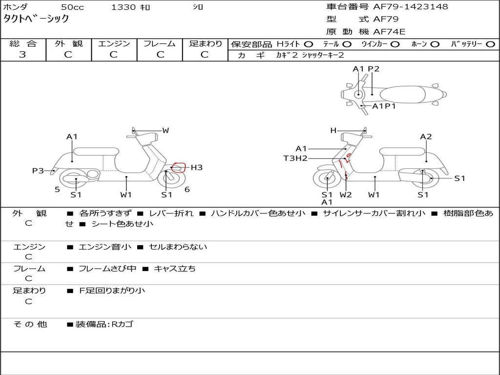 | Номер рамы / VIN | AF79-1423148 |