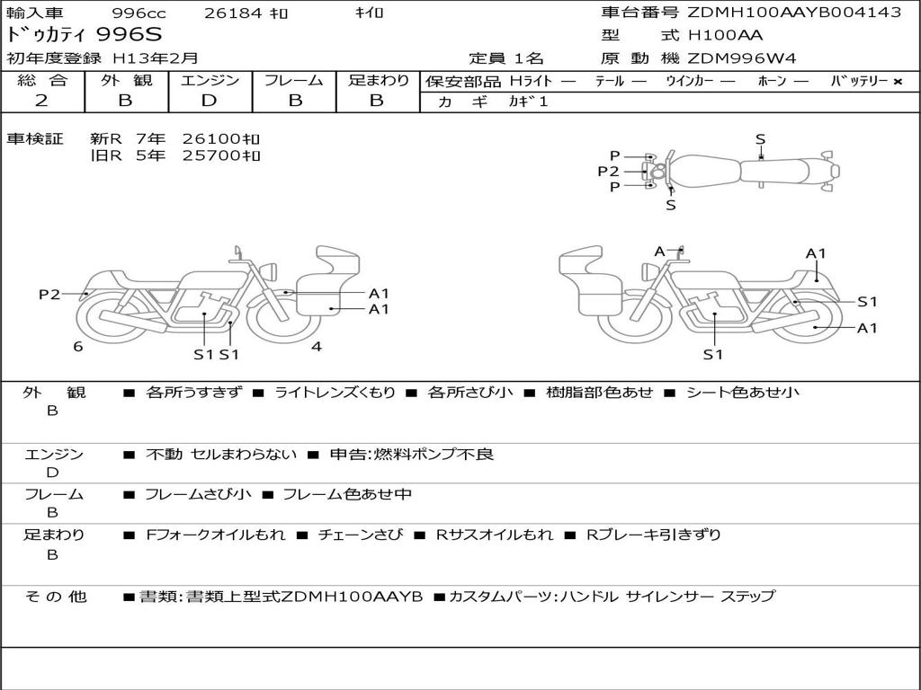 | Номер рамы / VIN | ZDMH100AAYB004143 |