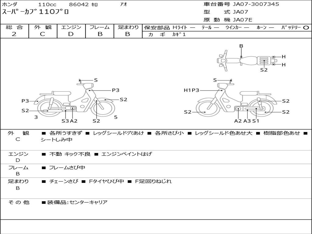 | Номер рамы / VIN | JA07-3007345 |