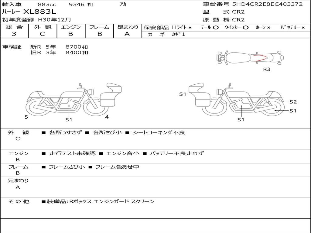 | Номер рамы / VIN | 5HD4CR2E8EC403372 |