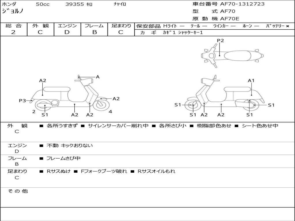 | Номер рамы / VIN | AF70-1312723 |