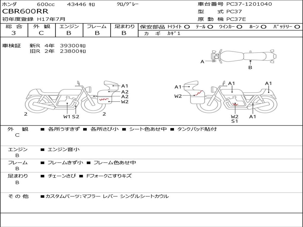 | Номер рамы / VIN | PC37-1201040 |