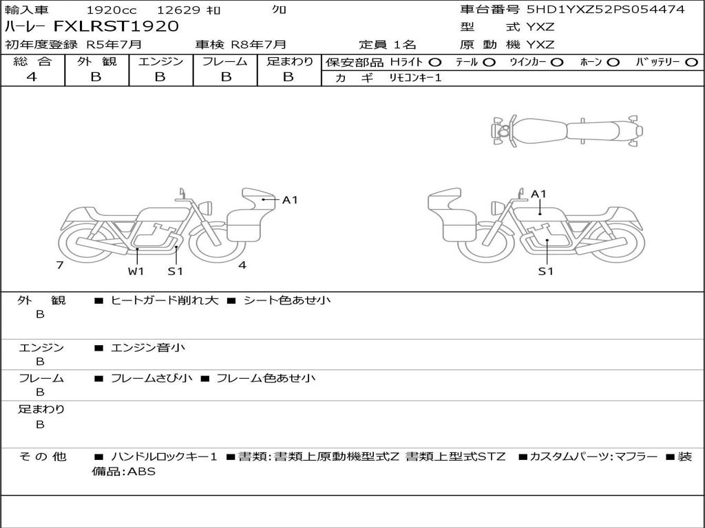 | Номер рамы / VIN | 5HD1YXZ52PS054474 |