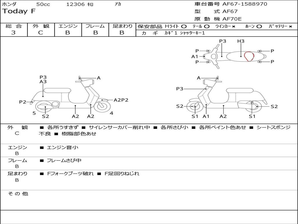 | Номер рамы / VIN | AF67-1588970 |
