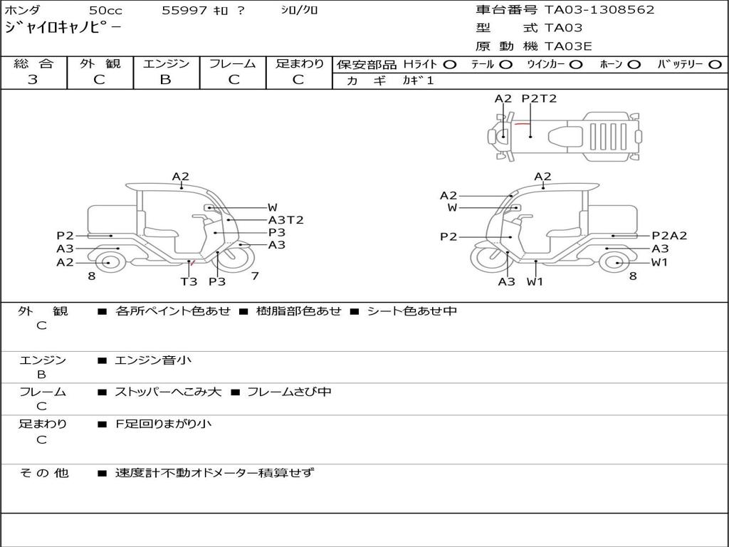 | Номер рамы / VIN | TA03-1308562 |