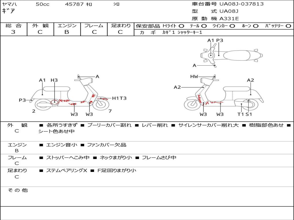 | Номер рамы / VIN | UA08J-037813 |