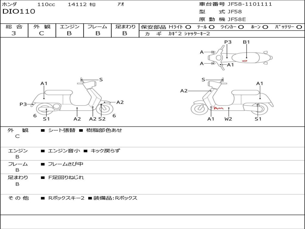 | Номер рамы / VIN | JF58-1101111 |