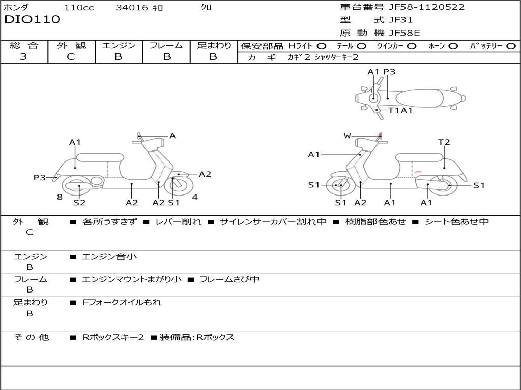 | Номер рамы / VIN | JF58-1120522 |