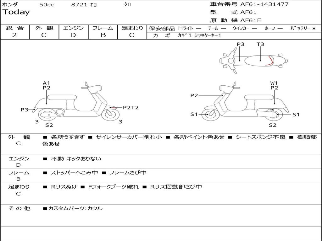| Номер рамы / VIN | AF61-1431477 |