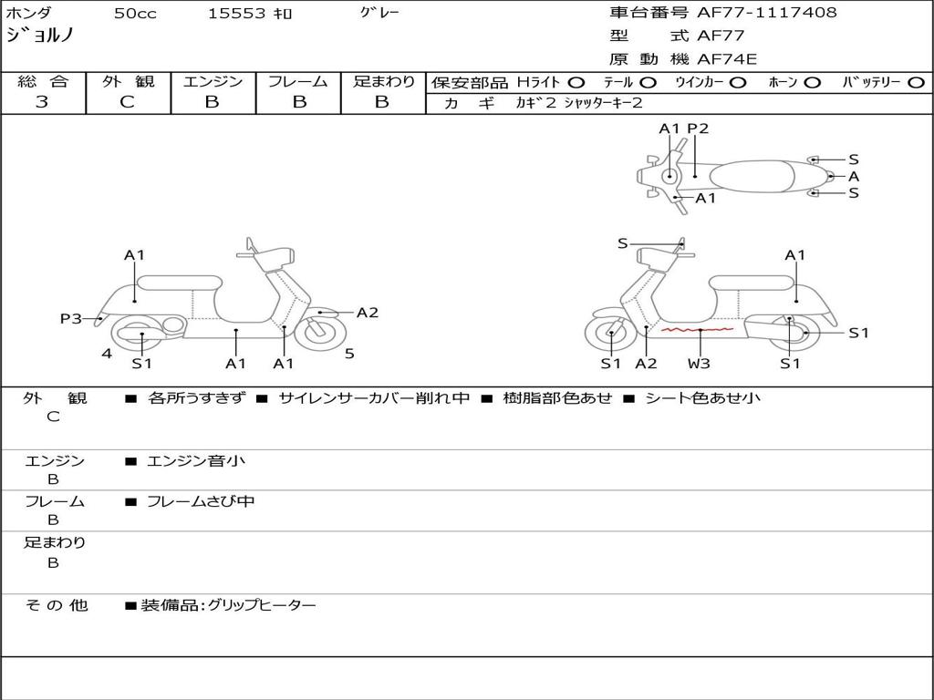| Номер рамы / VIN | AF77-1117408 |