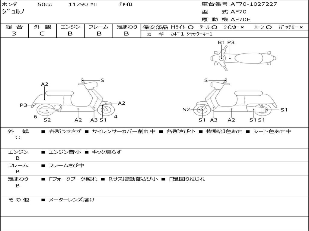 | Номер рамы / VIN | AF70-1027227 |