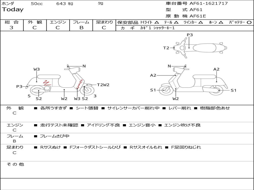 | Номер рамы / VIN | AF61-1621717 |