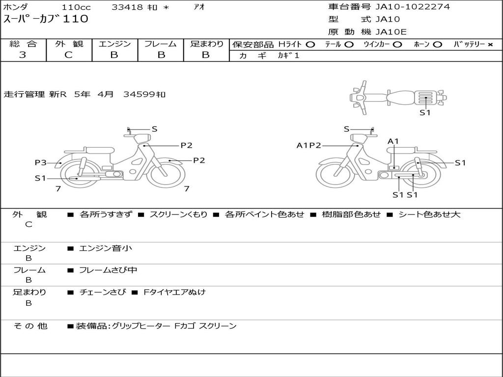 | Номер рамы / VIN | JA10-1022274 |
