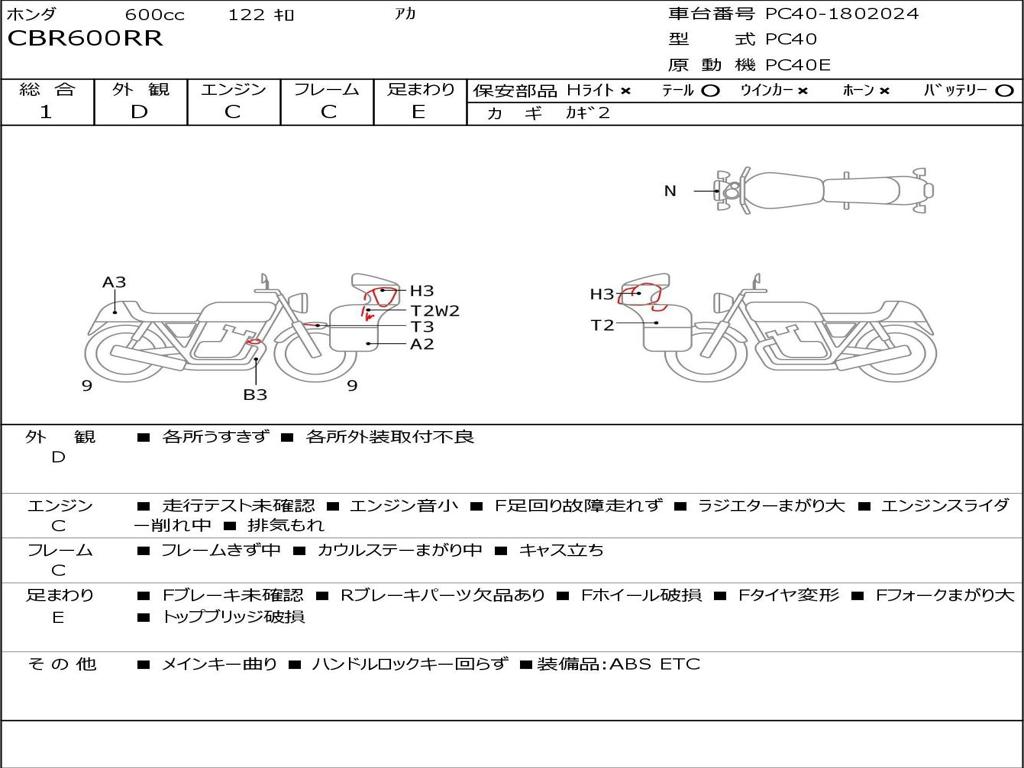 | Номер рамы / VIN | PC40-1802024 |