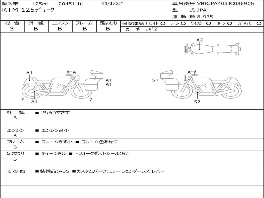 | Номер рамы / VIN | VBKJPA403JC086905 |