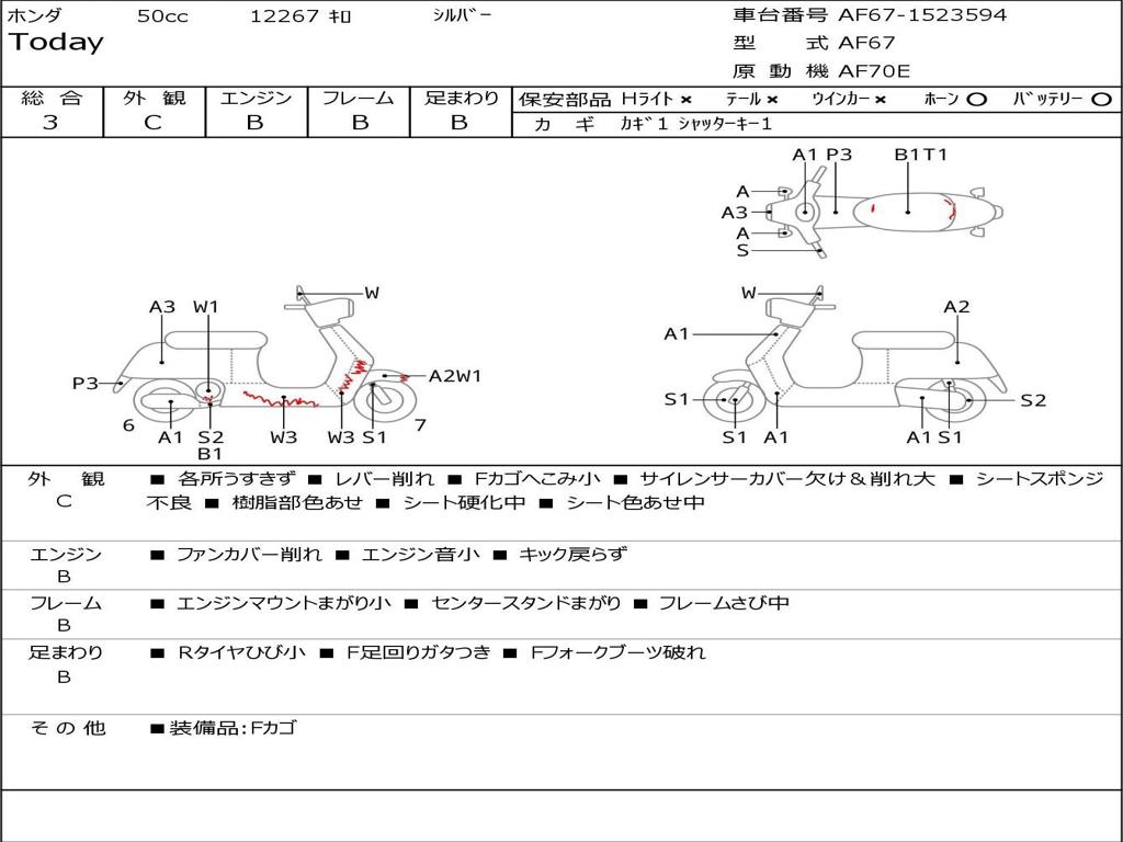 | Номер рамы / VIN | AF67-1523594 |