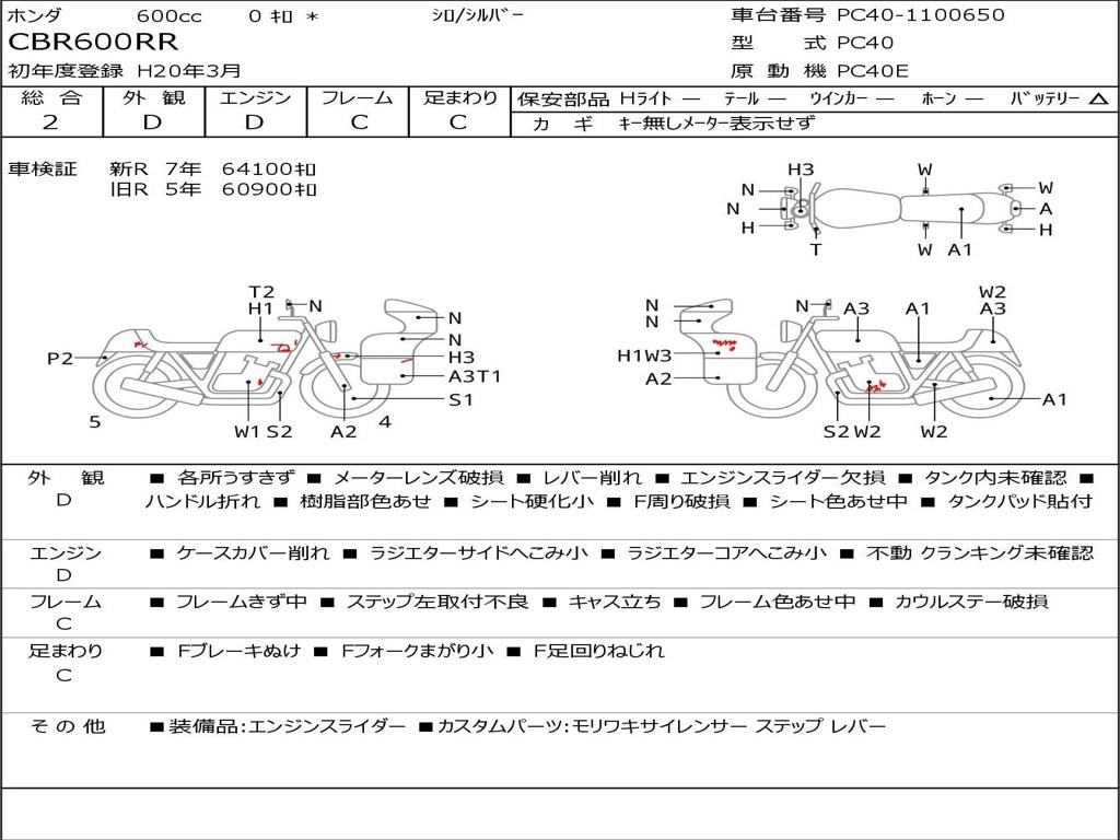 | Номер рамы / VIN | PC40-1100650 |