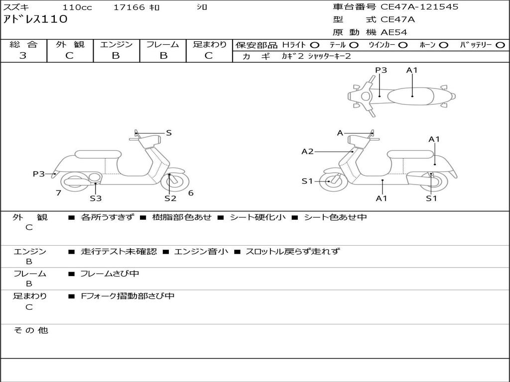 | Номер рамы / VIN | CE47A-121545 |