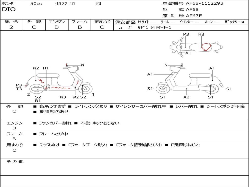 | Номер рамы / VIN | AF68-1112293 |