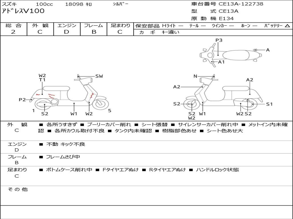 | Номер рамы / VIN | CE13A-122738 |