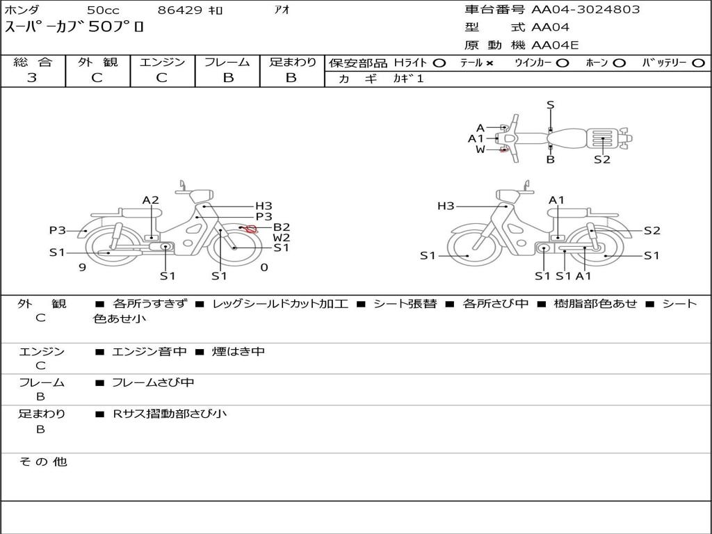 | Номер рамы / VIN | AA04-3024803 |