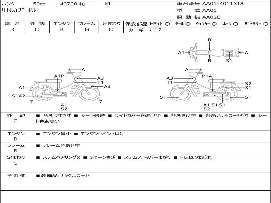 | Номер рамы / VIN | AA01-4011318 |