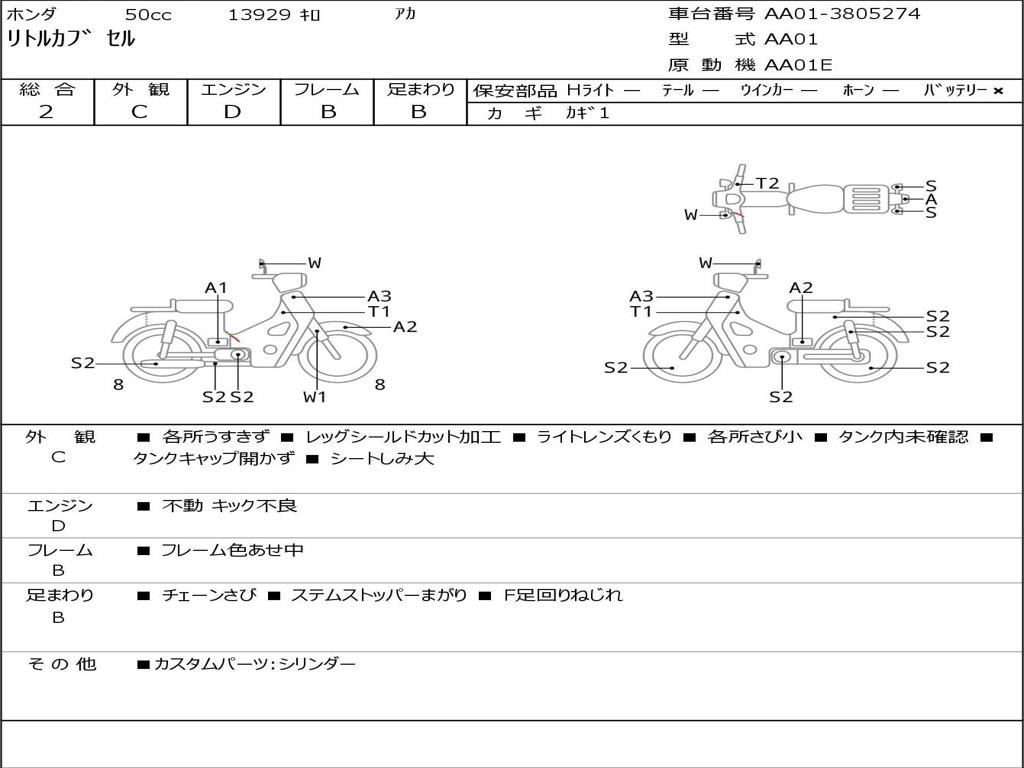 | Номер рамы / VIN | AA01-3805274 |