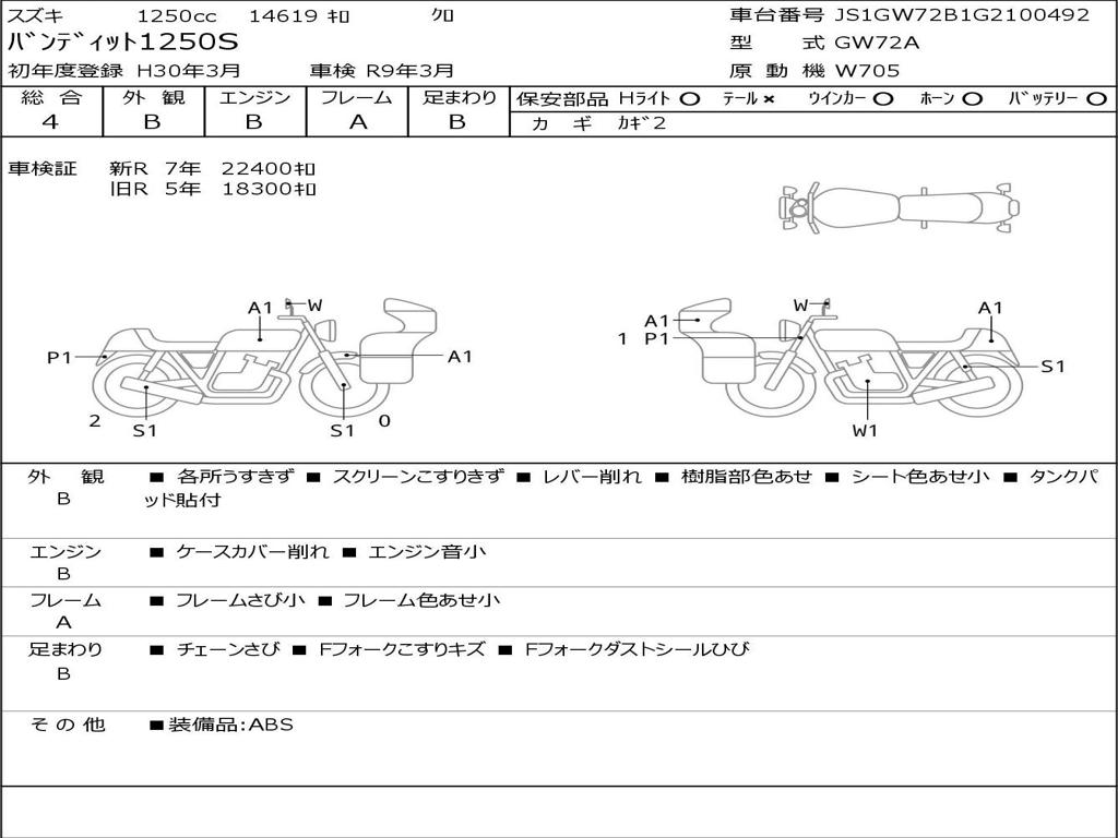 | Номер рамы / VIN | JS1GW72B1G2100492 |