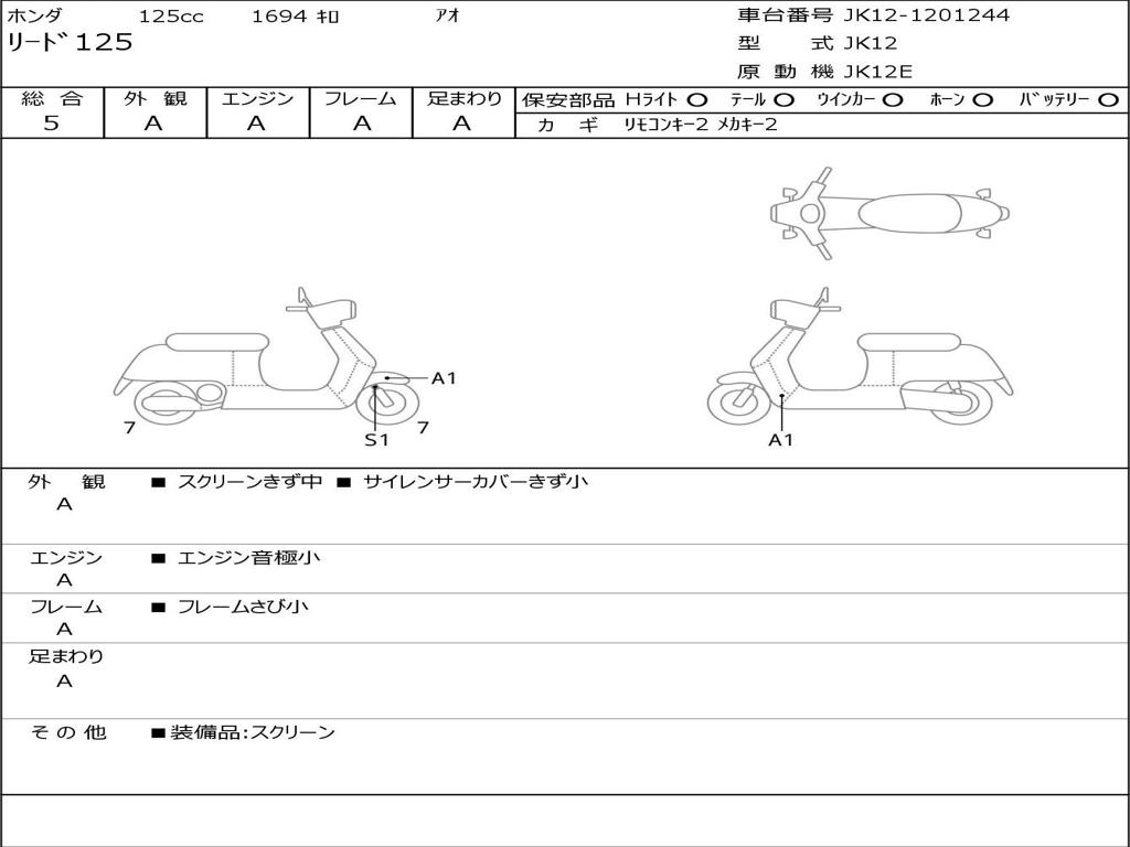 | Номер рамы / VIN | JK12-1201244 |